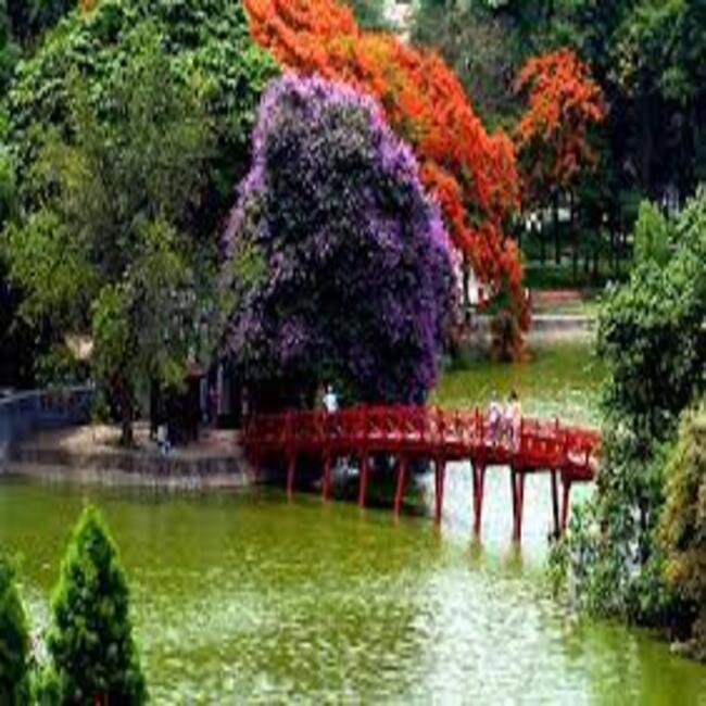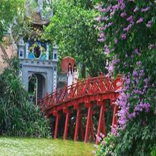 This is Ngoc Son Temple, located on Ngoc Island right in the heart of Hoan Kiem Lake. The temple was built in the 19th century